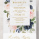 Invitation Tout En Un Mariage Fleurie Bleu Nuit Rose Poussiéreuse Or
