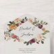 Une belle faire-part de mariage florale automnale avec vos noms en calligraphie écriture, nichée à l'intérieur d'une bordure géométrique de fleurs d'aquarelle et botaniques dans des tons de terre bouchée de marsala bordeaux, de rougissement, d'ivoire et de vert sauge. Personnalisez avec vos détails mariages sous. La carte RSVP attachée et le style pliant font de cette invitation tout-en-un un choix attrayant.