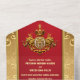 Une belle et régale invitation tout en un avec une luxueuse crête royale surmontée d'une couronne d'éléphants indiens d'or encadrée de chaque côté par une incrustation bordeaux bordée d'un faux or et d'une luxuriante toile de fond damassée vibrante. Les modèles de texte blanc pour votre libellé personnalisé apparaissent des deux côtés. Le tiers inférieur a une carte de réponse déchirante avec adresse rsvp personnalisée pour vos invités à compléter plus les mêmes éléphants royaux sur un cercle de marron bordé d'or sur le même fond damassé doré. Elles sont idéales pour l'hindi, l'hindou, le dharma de Sanatani et les mariages mariage d'origine asiatique, les fiançailles, les anniversaires, les douches nuptiales et les fêtes d'anniversaire. Il vous suffit de modifier le libellé pour convenir à votre événement ou occasion spéciale.