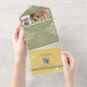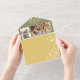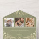 Découvrez notre invitation de mariage tout en un, d'inspiration vintage, chic et romantique, magnifiquement conçue dans des tons doux jaune et vert sauge. Accentuée de délicates fleurs en faux or, cette invitation exhale une romance intemporelle et une élégance raffinée. Célébrez votre histoire d'amour unique avec un design aussi inoubliable que votre journée spéciale. Personnalisez-le avec jusqu'à trois photos du couple, et profitez de la commodité d'un code QR pour des RSVP sans faille et un accès facile à tous les détails mariages. Pas d'enveloppe requise : ajoutez simplement votre adresse de retour, scellez-la et envoyez avec amour et joie !