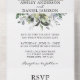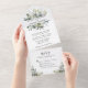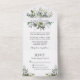 Elégante aquarelle moderne Botanical Greenery Mariage All In One Invitation avec la carte RSVP comprend des feuilles d'eucalyptus, le feuillage botanique vert, feuilles bleus poussiéreux et d'autres belles verdure botanique.