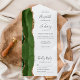 Le bord gauche de cette élégante faire-part de mariage tout-en-un moderne et RSVP est doté d'une bordure d'aquarelle vert chasseur, ornée d'une parties scintillant en faux or. Le texte personnalisable combine écriture manuscrite grise au fusain, cuivre et polices italiques sur un arrière - plan blanc. L'adresse de retour apparaît sur le rabat extérieur et sur le côté arrière de la carte RSVP détachable.