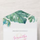 Nouvelle destination des îles tropicales des invitations de mariage et carte rsvp. Les détails sont définis dans une typographie manuscrite en rose vif avec une police de visage serif traditionnelle. Une réplique de ma monstère d'aquarelle originale et de mes feuilles de palmiers orne l'intérieur de votre tout en un seul invitation. Customisez chaque rabat avec vos coordonnées de mariage, rsvp et adresse de retour. Un choix côtier chic pour les mariages décontractés sur la plage. Pour voir d'autres invitations à des mariages à petit budget avec rsvp et enveloppes de Victoria Grigaliunas visitez DoTellABelle sur Zazzle à www.zazzle.com/dotellabelle
