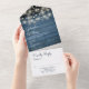 Invitation Tout En Un Mariage Monogramme en bois rustique bleu