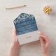 Le tout dans un faire-part de mariage avec une jolie aquarelle feuillage verdoyante et élégante typographie moderne sur un arrière - plan de panneaux de bois bleu rustique. L'invitation comprend une carte RSVP perforée qui peut être adressée individuellement ou laissée vide pour que vous puissiez écrire à la main les coordonnées de votre invité. Conçu par Thisisnotme©
