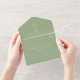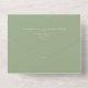 Un tout moderne en un seul faire-part de mariage est vert sauge avec la typographie blanche. Cette invitation est parfaite pour ceux qui désirent un mariage simple mais élégant. Vos invités se contentent de déchirer le RSVP qui a été préimprimé avec votre adresse de retour et de vous le renvoyer par la poste. Vous pouvez écrire à la main le nom et l'adresse postale de vos invités au recto de la carte
