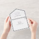Ce Mariage blanc noir Décontracté classique All in One Invitation donne le ton d'un événement sophistiqué et élégant pour le printemps, l'été, l'automne ou l'hiver. Le noir et blanc intemporel offre des détails polis foncés et contrastés de bordures chic et de style vintage - un look épuré qui peut vraiment présenter un look moderne minimaliste tout aussi facilement qu'un événement de luxe formel et embelli. Ce design imbibe une couture cravate noire/petite robe noire esthétique à votre journée spéciale.