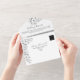 Annoncez votre grand jour avec cette élégante faire-part de mariage tout-en-un tout-en-un en noir et blanc, qui présente des illustrations florales délicates et une disposition boho moderne. Cette conception pliable comprend un monogramme personnalisable, une section RSVP intégrée et un espace pour votre site Web mariage et les informations sur les invités, sans enveloppe requise. Parfait pour les mariages botaniques minimalistes, monochromes ou modernes. Personnalisez avec vos détails et une photo pour une touche sophistiquée et terre à terre. Remarque : Cette invitation tout-en-un nécessite une enveloppe distincte pour l'envoi. Nous vous recommandons de l'apparier avec une enveloppe A9 standard (5,75 po x 8,75 po) pour un meilleur ajustement.