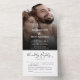 Si vous envisagez un mariage qui rayonne de charme et de sophistication, notre faire-part de mariage tout-en-un est conçu pour vous. Avec un design contemporain avec une touche d'élégance, cette invitation fera une impression durable sur vos invités. Montrez votre belle histoire d'amour avec une photo chère de vous et de votre partenaire. Il ajoute une touche personnelle et permet à vos invités de se sentir connecté à votre voyage. Le dégradé transparent foncé ajoute une touche de mystique à votre invitation, le rendant visuellement captivant et lui donnant un avantage moderne. Il donne le ton parfait pour une célébration mariage mémorable, tandis que le script délicat et romantique, renforce le charme général de l'invitation. Nous savons à quel point il est important de rationaliser votre processus de planification des mariages. Grâce à notre carte postale RSVP déchirée, vos invités peuvent facilement répondre, ce qui vous permet de garder facilement trace de votre liste d'invités. Ne manquez pas ces caractéristiques qui rendront vos invitations de mariage inoubliables ! Commandez notre faire-part de mariage tout-en-un aujourd'hui et créez une célébration extraordinaire de votre histoire d'amour!