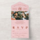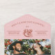 Floral tout en un faire-part de mariage avec votre photo et une belle esperluette fleurie en rouille contre rose clair.