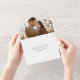 Faire-part de mariage tout-en-un élégant avec votre photo fiançailles en haut du design. Vos noms et les détails du mariage sont affichés en texte blanc avec des accents de script de calligraphie moderne sur un arrière - plan vert. La conception comporte une carte RSVP détachable ci-dessous qui peut vous être envoyée par la poste en tant que carte postale. Conçu pour coordonner avec notre collection de mariages Modern Elegance.