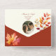 Célébrez votre amour avec cette invitation de mariage automnal rustique présentant des feuilles chaudes de l'automne, une section photo et un code QR pratique pour RSVP. Parfait pour les mariages saisonniers, ce design écologique offre un format plié et envoyé pour un envoi facile.