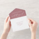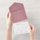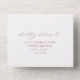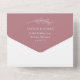 Un rose classique et élégant tout en un faire-part de mariage est une option invitation triplé unique qui est auto-fermé, scellé, envoyé aux invités avec une carte postale RSVP détachable; pas besoin d'enveloppes! Le design comprend des accents de script de calligraphie moderne avec typographie de style classique. L'adresse de l'invité peut être incluse à l'arrière - imprimée ou manuscrite, ainsi que l'envoi postal. Le rabat arrière comprend un accent floral simple avec un texte d'adresse de retour personnalisé, et la carte postale RSVP inclut l'adresse de retour sur le dos afin qu'il puisse être arraché à l'aide d'un pli perforé et renvoyé par la poste sans enveloppe. Les couleurs rose rose et blanc poussiéreuses peuvent être modifiées pour correspondre à votre jeu de couleurs mariages.