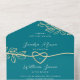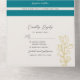 Faites de votre mariage un moment inoubliable grâce à notre faire-part de mariage bohème tout-en-un écologique, conçu pour les couples qui apprécient la durabilité sans sacrifier le style. Conçue à partir de matériaux respectueux de l'environnement, cette invitation mêle l'ivoire doux et les teintes turquoises avec d'élégants accents d'or et une verdure luxuriante, créant une esthétique sereine et terreuse. Au coeur du design, un délicat coeur de cordes d'or symbolise votre amour durable, tandis que la calligraphie raffinée ajoute une touche de romance. Ce design tout-en-un comprend des détails RSVP et un lien direct vers votre site Web mariage, ce qui assure la commodité de vos invités. Le dos est doté d'une adresse de retour personnalisée, tout en conservant une touche personnelle. Parfait pour les mariages du printemps ou de l'été, cette invitation écologique est un très beau choix pour les couples à la recherche d'un mélange de beauté naturelle, de sophistication et de durabilité. Important : Cette invitation écologique nécessite une enveloppe distincte pour l'envoi.