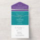 Faites honneur à votre amour avec une élégance sobre grâce à notre faire-part de mariage tout-en-un minimaliste. Doté d'un script de calligraphie épuré dans les tons turquoises et violets, il dégage un charme moderne. Le coeur de la corde en faux argent ajoute une touche de sophistication, tandis que l'image personnalisée du couple sur le dos insuffle l'intimité et la chaleur. Complète avec des détails mariages et une section RSVP, cette invitation promet une célébration remplie d'amour et de style intemporel, où chaque élément reflète la beauté de votre voyage unique ensemble.