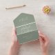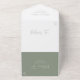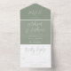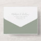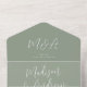 Faire-part de mariage moderne avec vos initiales monogrammes, noms et détails mariages dans un script blanc simple avec un arrière - plan vert sage. La faire-part de mariage tout-en-un vert sauge comprend une carte postale RSVP.