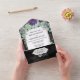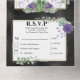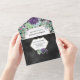 Une belle aquarelle avec des succulents dans les tons violets, verts et roses contre un arrière - plan noir imitant sur lequel reposent de jolis faux diamants. Le tiers inférieur a une carte de réponse déchirante avec adresse rsvp personnalisée pour vos invités à compléter. Elles sont idéales pour n'importe quel pays ; extérieur; boho ; jardin ou mariage extérieure.