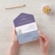 Elégante Faire-part de mariage tout-en-un moderne avec RSVP perforé dans une belle palette de couleurs trois tons avec des teintes violet, lavande et perwinkle. Chaque section dans un ton riche différent. Des feuilles de papier d'argent imitation délicats qui présentent vos détails. Invitation respectueux de l'environnement puisqu'il n'est pas nécessaire d'insérer des cartes supplémentaires, des cartes RSVP ou même des enveloppes, cette invitation a tout! Possibilité d'ajouter à la fois les détails de la cérémonie et de la réception des Mariages, ainsi que la carte postale RSVP prêt à être rempli et envoyé par la poste! Design minimaliste élégant en noir et blanc avec des détails modernes de calligraphie manuscrite. Possibilité de commander des invitations avec un nom d'invité imprimé (ou écrit à la main plus tard) au dos afin que vous puissiez le poster sans besoin d'enveloppes. Si vous préférez utiliser des enveloppes, il vous suffit d'effacer le nom de l'invité et les caractères d'adresse des zones de texte pour les supprimer. Un design moderne attrayant, idéal pour un couple élégant, mais pratique et respectueux de l'environnement !