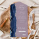 Le bord gauche de cette élégante faire-part de mariage tout-en-un moderne et RSVP est doté d'une bordure en aquarelle bleu marine ornée d'une parties scintillant en faux argent. Le texte personnalisable combine écriture manuscrite blanche, copperplate et polices italiques sur un arrière - plan mauve violet. L'adresse de retour apparaît sur le rabat extérieur et sur le côté arrière de la carte RSVP détachable en texte blanc sur le mauve solide.