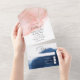 Faire-part de mariage de lavage couleur bleu marine et rose vif aux formes géométriques dorées personnalisable selon vos spécifications.