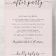 Étage rose clair moderne ou faire-part mariage privée et réception dans une seule invitation. Customisez votre faire-part salon/mariage, invitation à la réception et choix de menu. "Happily Ever After Party" est écrit dans une simple typographie et un script élégant avec des swashes. Une carte postale RSVP détachée offre une réponse commode, écologique et sans enveloppe de la part de vos invités.