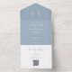 Invitation Tout En Un Monogramme bleu et or Dusty Code QR Mariage