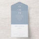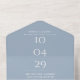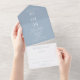 Un élégant minimaliste bleu poussiéreux tout en un faire-part de mariage avec vos détails de date et de mariage spéciaux dans la typographie classique et chic. L'invitation comprend une carte RSVP perforée qui peut être adressée individuellement ou laissée en blanc pour que vous puissiez écrire à la main les coordonnées de votre invité. Conçu par Thisisnotme©