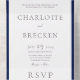 Invitation Tout En Un Monogramme minimal bleu et blanc marine Code QR