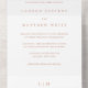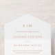 Un modèle tout-en-un unique avec carte rsvp pour une option pratique et économique pour les couples économes en budget. L'invitation moderne mais élégante présente votre monogramme à deux lettres en haut ainsi que vos détails mariages en or rose sur un arrière - plan blanc. Un design chic et design qui conviendra à un couple minimaliste.