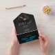 DISPONIBLE AVEC UN CODE QR OU AVEC OU SANS CHOIX DE DÎNER. Ce design faire-part de mariage présente un thème sombre et humoristique qui est simple, mais étonnant. Un arrière - plan noir de fusain foncé est la toile parfaite pour votre photo personnelle. Une seule teigne bleue turquoise est assise sur le dos, ses ailes s'étalent pour le vol. Unique et élégant, ce design peut être utilisé pour n'importe quelle saison. Créé par Simply Farmhouse Press.