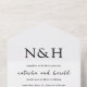 Moderne tout en un faire-part de mariage avec un design simple et minimal noir et blanc avec votre monogramme en caractères gras avec vos noms dans un élégant script d'écriture manuscrite. Utilisez le modèle pour générer un code QR simplement en ajoutant votre URL, ou en le supprimant dans l'outil d'édition de conception.