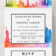 New York, Empire State Building, moderne tout en une invitation de mariage. Trendy, arc-en-ciel, invitations de mariage skyline. Customisez avec vos détails. Commandez à temps pour éviter une déception.