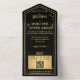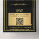Le tout dans un faire-part de mariage avec un élégant design noir et or avec confettis pétillants. L'invitation a un modèle de code QR à laquelle vous pouvez facilement ajouter une URL à votre propre site Web. En coque, vous ne voulez pas utiliser de code QR, vous pouvez utiliser la zone stylisée en or comme arrière - plan de texte et ajouter du texte RSVP dans l'éditeur avancé.