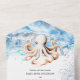 Un beau design de plage d'été avec une pieuvre blanche teintée d'orange contre les vagues bleues de l'océan. Une deuxième pieuvre blanche apparaît sur la bande de déchirure rsvp en bas et une troisième sur le rabat arrière. Ce design élégant est placé contre un arrière - plan blanc qui a des modèles noirs pour votre formulation personnalisée. Cette invitation économique et conviviale est idéale pour la destination côtière, les mariages tropicaux des îles, du bord de mer et de la plage.