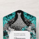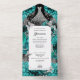 Une belle invitation tout-en-un avec des roses bleus turquoises, des brins diamantés, un feuillage faux en feuilles d'argent, une tiare et des étoiles étincelantes qui encadrent une lune de diamant éblouissante remplie de pierres rhinocéros chatoyantes. Il y a des modèles pour votre libellé personnalisé et le tiers inférieur a une carte déchirante que vos invités trouveront utile pour trouver leur chemin vers la réception. Elles sont idéales pour des fêtes d'anniversaire ou des événements et occasions spéciaux. Customisez l'invitation pour qu'il convienne à votre célébration.