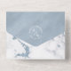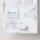 Un arrière - plan abstrait qui évoque le marbre veiné à la parties scintillant dans les tons bleu poussiéreux à travers le bleu et le blanc acier est la toile de fond de l'élégant texte de script et des dispositions design moderne dans les pièces de cette belle suite mariage. La combinaison de faire-part de mariage et de carte postale RSVP présentée ici présente un élégant arrière - plan en marbre et une texture aquarelle assortie au verso. Recherchez ID816 pour voir d'autres pièces et choix de couleurs pour cet ensemble.