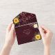 Rejoignez-nous pour une célébration élégante au coeur de la campagne, où le bois de grange bordeaux rustique rencontre les tournesols vintages et la dentelle fleurie bohème, le tout illuminé par des lampes à cordes scintillantes et orné de monogramme au sommet et d'accents dorés. Ajoutez votre RSVP, site mariage, que sceller et envoyer!