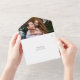 Le tout dans un faire-part de mariage avec votre photo et de jolies guirlandes roses de pivoine encadrant vos détails mariages personnalisés ensemble dans un texte élégant et des initiales monogrammes sur le devant. L'invitation comprend une carte RSVP perforée qui peut être adressée individuellement ou laissée en blanc pour que vous puissiez écrire à la main les coordonnées de votre invité. Conçu par Thisisnotme©