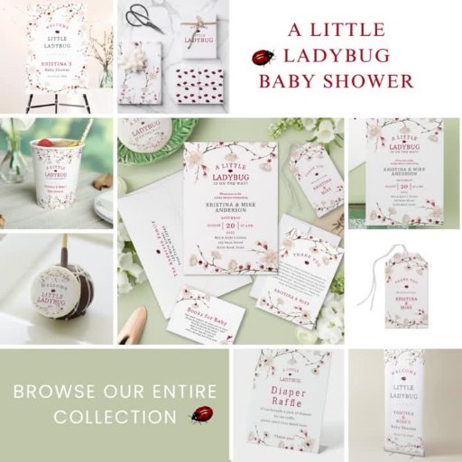 Cette invitation à baby shower tout-en-un Little Ladybug présente un design de fleurs vintages de cerisiers et de coccinelle. Le texte est dans un rouge juteux et du charbon de bois pour se coordonner avec les coccinelles et les bourgeons de fleurs de cerisiers. L'envers présente les détails du baby shower ainsi que le code QR pour le registre de la mère à être. Personnalisez simplement le script pour vos besoins avec ce design doux.