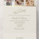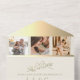 Élégant, moderne, minimaliste or tout en un avec monogramme - initiales de mariée et mariée, script de calligraphie simple et personnalisation quatre images du couple. Ajoutez vos photos, votre site web et votre code QR - pour RSVP et plus d'infos.