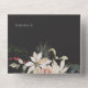 DISPONIBLE AVEC OU SANS CODE QR. Ce design présente des sprigs de pin vert, des baies rouges, des poinsettias blanches et de la verdure de vacances sur un arrière - plan noir au charbon de bois doux. Un monogramme sur le rabat de l'enveloppe arrière complète le look simple mais élégant de tout cela en une seule invitation. Les invitations tout-en-un personnalisées sont une combinaison unique d'une invitation personnalisée magnifiquement imprimée et d'une carte postale RSVP perforée facile à déchirer. Et ils sont si faciles à utiliser ! Il suffit de plier, puis de sceller le rabat arrière avec les trois autocollants clairs inclus, et le courrier. Et quand vos invités reçoivent votre invitation personnalisé, ils déchirent la carte RSVP perforée et vous la remettent dans le courrier !