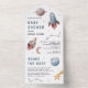 Éblouissez vos invités avec cet invitation de baby shower à thème spatial moderne avec de jolies fusées et des planètes avec carte de demande de réservation détachable. Ajoutez simplement les détails de votre événement sur ce modèle facile à utiliser pour en faire une invitation unique.