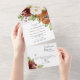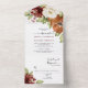 Ce Português All in one Wedding invitations qui incluent l'info du mariage et la carte postale RSVP. Une combinaison inspirante de fleurs d'aquarelle bordeaux, orange foncé et blanc. Changez le texte en cliquant sur le bouton "personnaliser". Personnalisez les informations en cliquant sur le bouton "détails".
