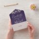 Le tout dans une faire-part de mariage avec de jolies lumières à cordes, un nom élégant de script signature et des initiales monogrammes sur un arrière - plan violet. L'invitation comprend une carte RSVP perforée qui peut être adressée individuellement ou laissée vide pour que vous puissiez écrire à la main les coordonnées de votre invité. Conçu par Thisisnotme©