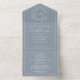 Invitation Tout En Un QR Code Dusty Blue Leafy Crest Monogram Mariage