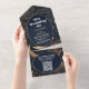Invitation Tout En Un QR Code Midnight Blue Gold CelestiMariage
