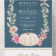 Éblouissez vos invités avec cet élégant invitation de mariage avec de beaux feuilles et un citrouille blanc rustique avec carte postale RSVP détachable. Ajoutez simplement les détails de votre événement sur ce modèle facile à utiliser pour en faire une invitation unique.