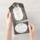 ÉGALEMENT DISPONIBLE AVEC UN CODE QR À ANALYSER. Ce design présente un bouquet rustique de pin vert et de pinecone sur un arrière - plan moelleux de cacao brun avec des fleurs blanches. Il est agrémenté d'une couverture brillante blanche pour illustrer la magie des belles vacances d'hiver. Parfait pour un mariage de Noël ou d'hiver. Les invitations tout-en-un personnalisées sont une combinaison unique d'une invitation personnalisée magnifiquement imprimée et d'une carte postale RSVP perforée facile à déchirer. Et ils sont si faciles à utiliser ! Il suffit de plier, puis de sceller le rabat arrière avec les trois autocollants clairs inclus, et le courrier. Et quand vos invités reçoivent votre invitation personnalisé, ils déchirent la carte RSVP perforée et vous la remettent dans le courrier !