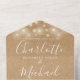 Le tout dans une seule faire-part de mariage avec de jolies lampes à cordes, des noms de style signature et de la typographie chic sur un arrière - plan kraft rustique. L'invitation comprend une carte RSVP perforée avec un code QR. Conçu par Thisisnotme©