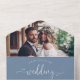 Invitation Tout En Un Script élégant moderne Dusty Blue 2 Mariage photo